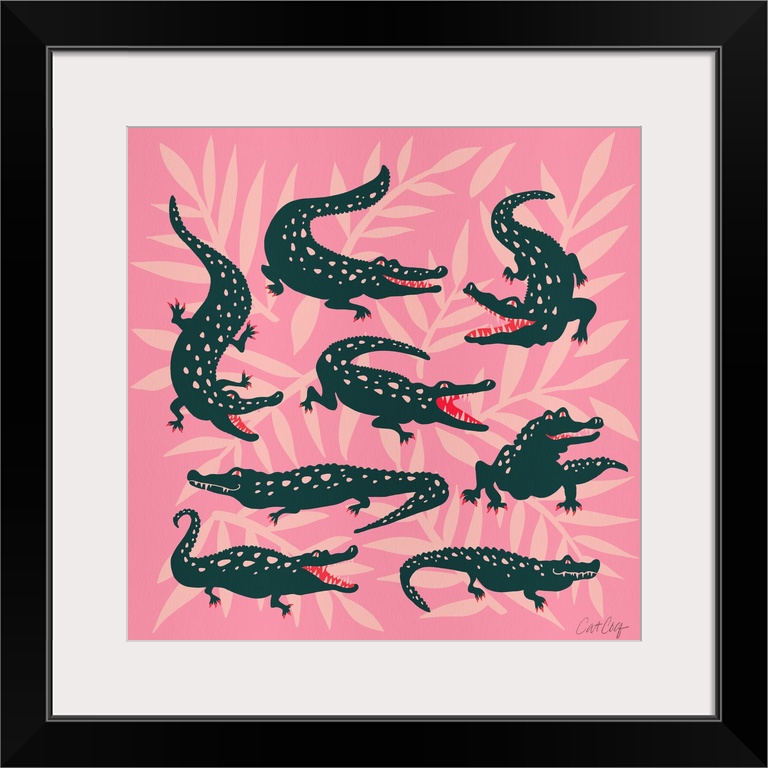 Art Children's Art Cat Coquillette Decorative Art Graphic Art Pink Wall Art Wildlife Reptile Gators and Crocs