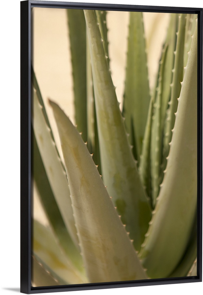 <p>Close up of the pointed leaves of an aloe plant.</p>
