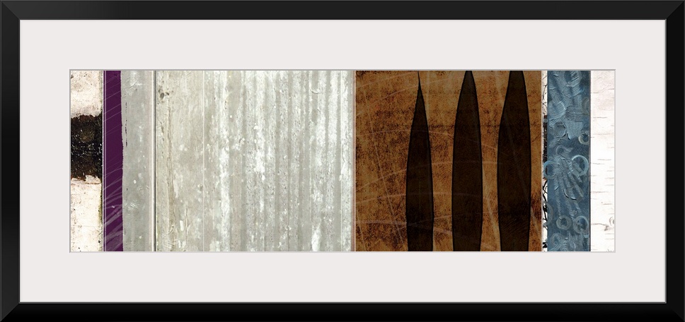 <p>Contemporary horizontal design of textured colors and leaves in multiple panels.</p>