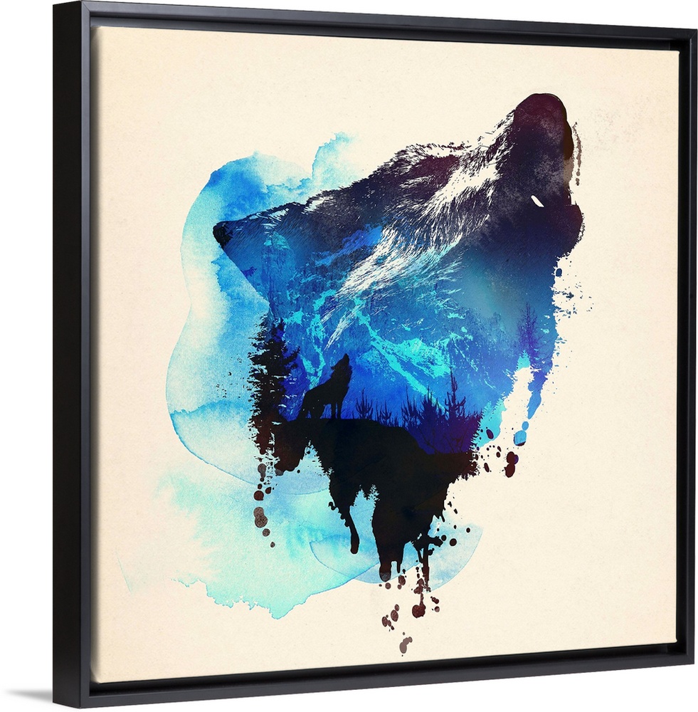 <p>Contemporary double exposure artwork of a wolf and forest silhouette scene.</p>