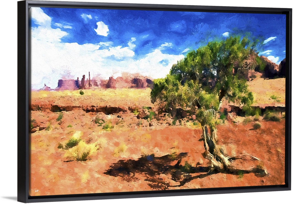 <p>A photograph of a desert landscape with a painterly effect.</p>