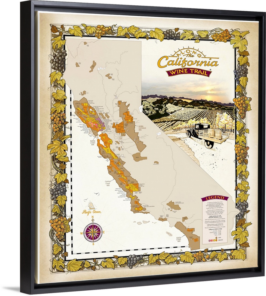 Art Wine Maps Scenery by Region California Vintage Art