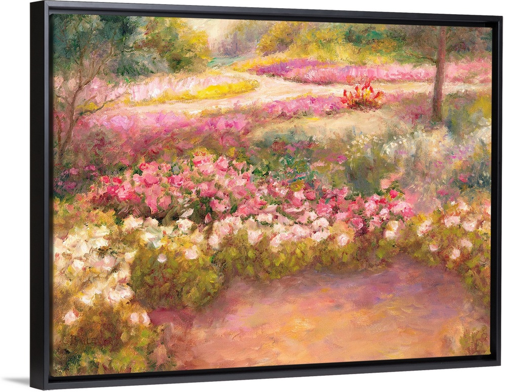 <p>Contemporary artwork of a path in a garden surrounded by flowers.</p>
