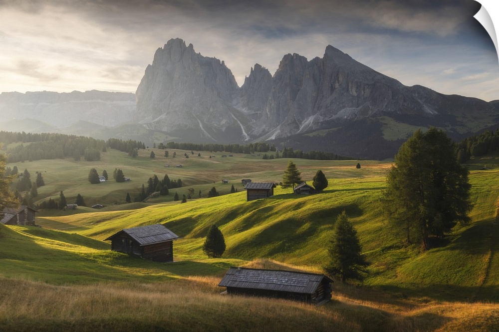 <p>Alpe di Siusi (Seiser Alm) with the Sassolungo and Sassopiatto in the back. Dolomites, Italy.</p>