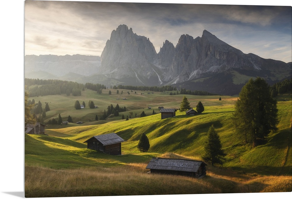 <p>Alpe di Siusi (Seiser Alm) with the Sassolungo and Sassopiatto in the back. Dolomites, Italy.</p>