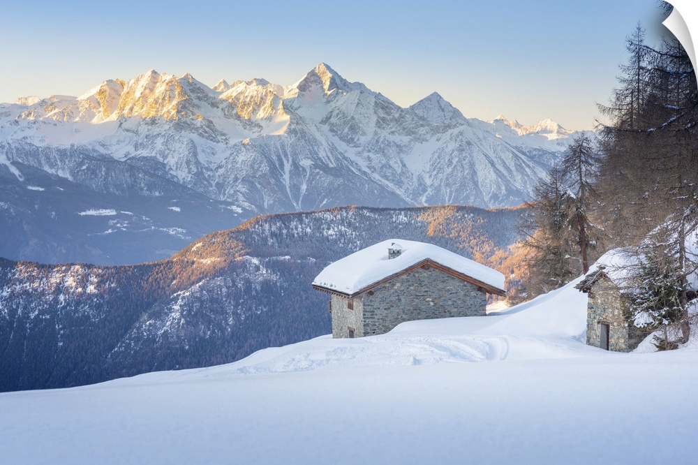 <p>Alpe Pilaz at dawn, La Magdeleine, Valtournenche, Valle d Aosta, Italian alps, Italy</p>