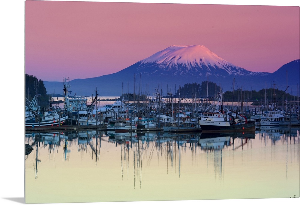 <p>Alpenglow Sunrise On Mt. Edgecumbe And The Small Boat Harbor In Sitka, Alaska</p>