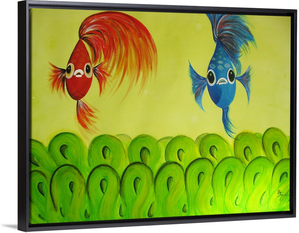 <p>Vibrant painting of two Betta fish, one red and one blue.</p>