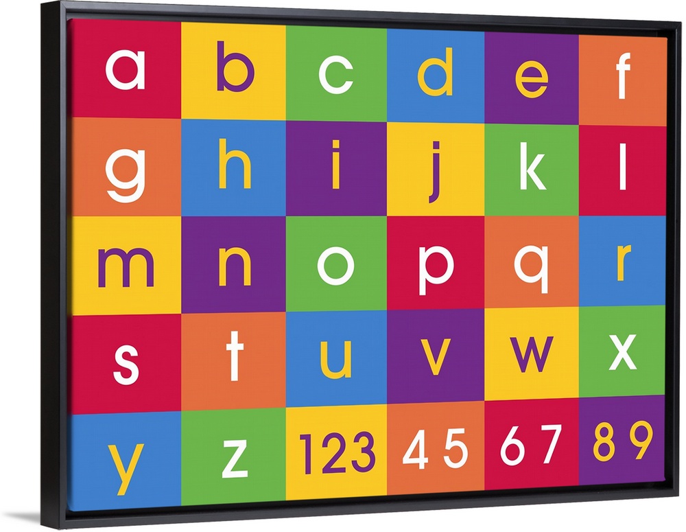 <p>Alphabet and numbers canvas print in bright fun colors. Contemporary design for kids and children's bedroom, nursery or play room. Perfect for learning the abc's.</p>