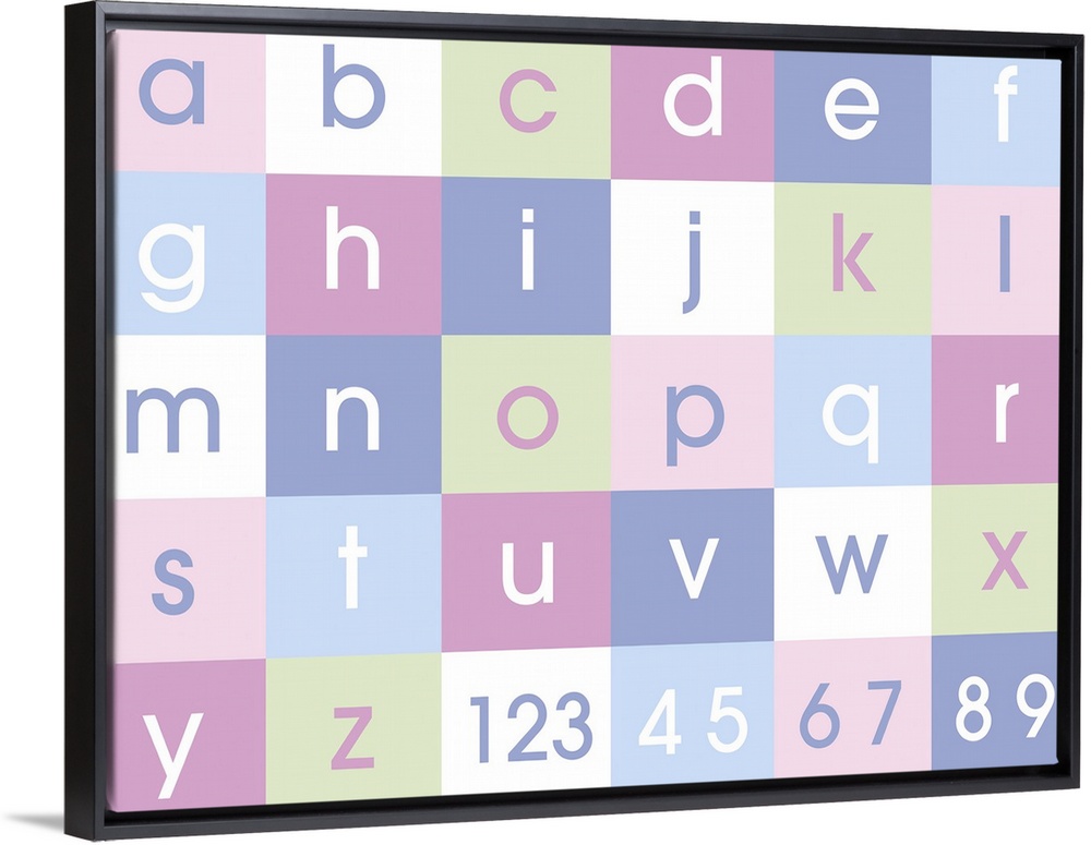 <p>Alphabet and numbers canvas print in bright fun colors. Contemporary design for kids and children's bedroom, nursery or play room.</p>