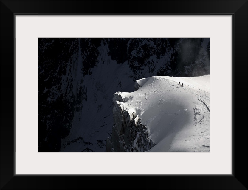 <p>Mountain climbers near a treacherous cliff, Aiguille du Midi, Chamonix, France.</p>