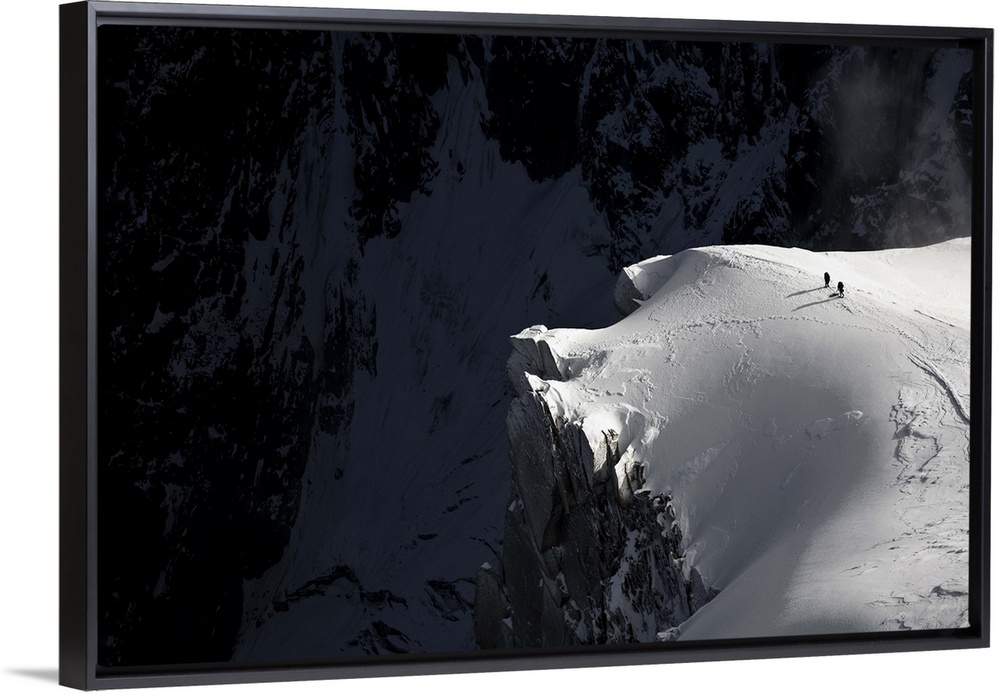<p>Mountain climbers near a treacherous cliff, Aiguille du Midi, Chamonix, France.</p>