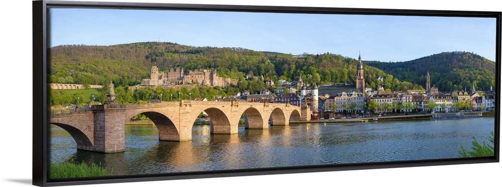 <p>Germany, Baden-Wurttemberg, Heidelberg. Alte Brucke (old bridge) and Schloss Heidelberg castle on the Neckar River.</p>