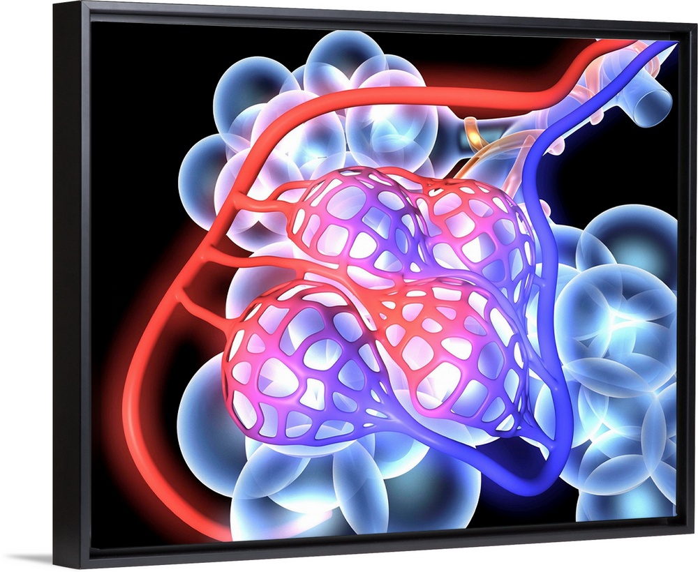 <p>Alveoli. 3d medical illustration showing the alveoli and blood vessels in the human lung.</p>