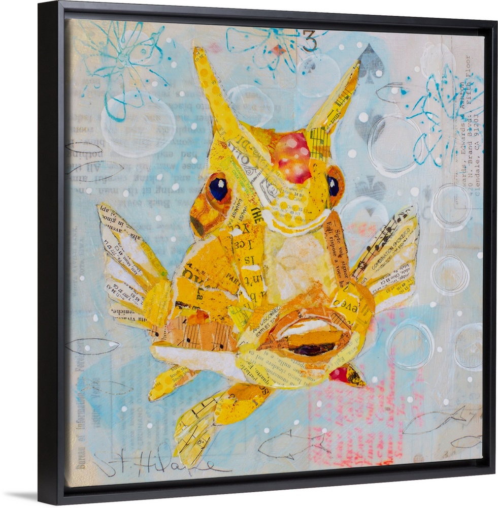 Art Contemporary Art Wildlife Mixed Media Art Elizabeth St. Hilaire Wildlife Marine Life Fish Yellow Wall Art