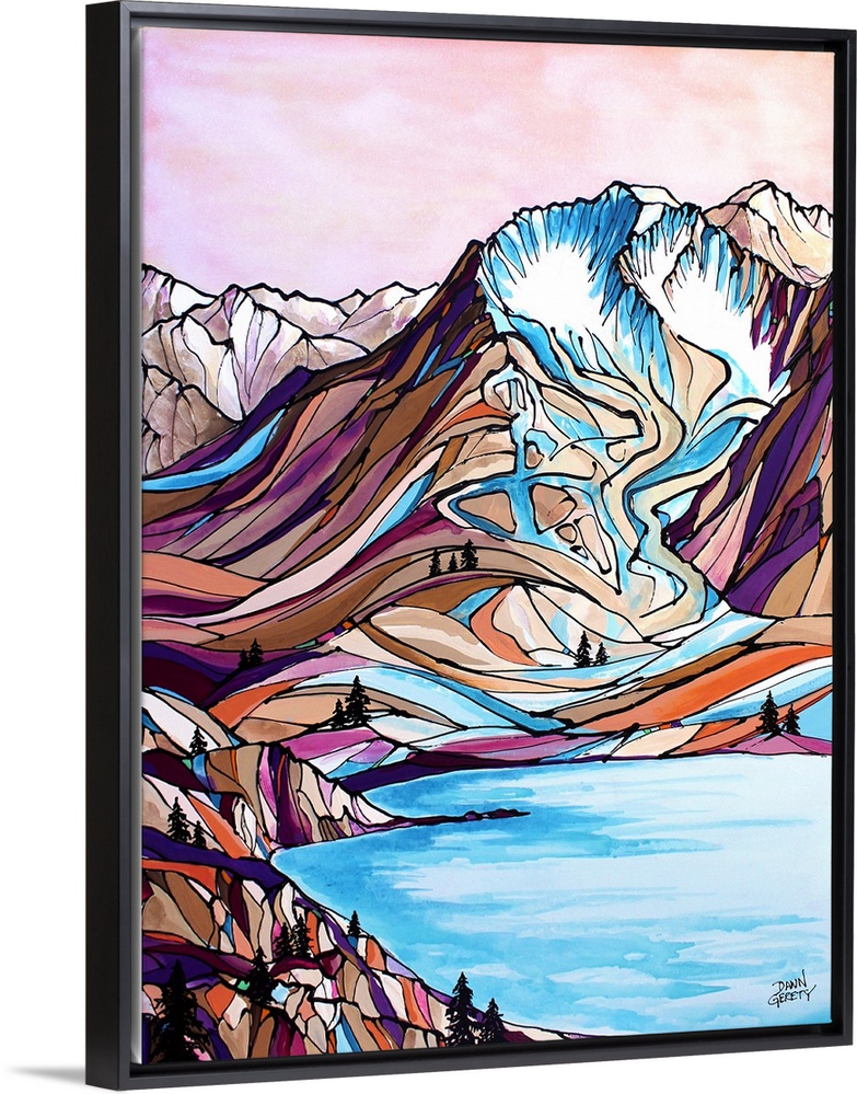 <p>Dawn Gerety was born in Sydney, Australia and raised across the globe in Girdwood, Alaska. As a lifelong Alaskan, she is moved by the natural splendor that has surrounded her her entire life – mountains, wildlife, rivers, wildflowers and outdoor activities. Dawn paints these images and creates her own language with a swipe of color or a rigid line of dots. She injects a fiercely whimsical vitality to Alaskan icons the only way she knows how.</p>
