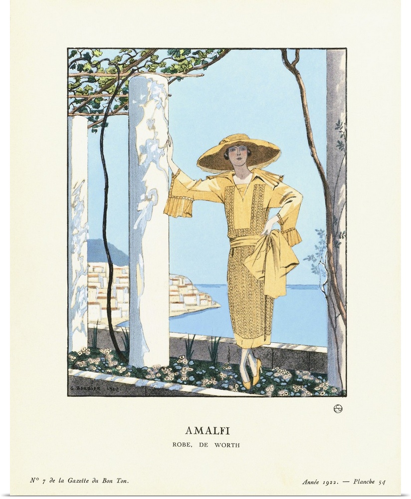 <p>Amalfi. Amalfi, Campania, Italy. Robe de Worth. Dress by Worth. Art-deco fashion illustration by French artist George Barbier, 1882-1932. The work was created for the Gazette du Bon Ton, a Parisian fashion magazine published between 1912-1915 and 1919-1925.</p>