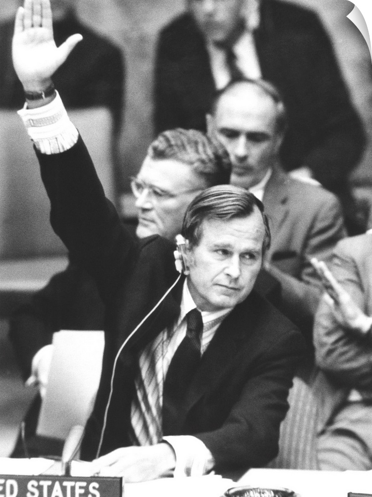 <p>Ambassador George Bush casts the 2nd U.S. veto in the United Nations history. It was to block an African measure calling for a simple sensation of military operations in the Middle East without reference to the Munich massacre of Israeli Olympic athletes. Sept. 10, 1972.</p>