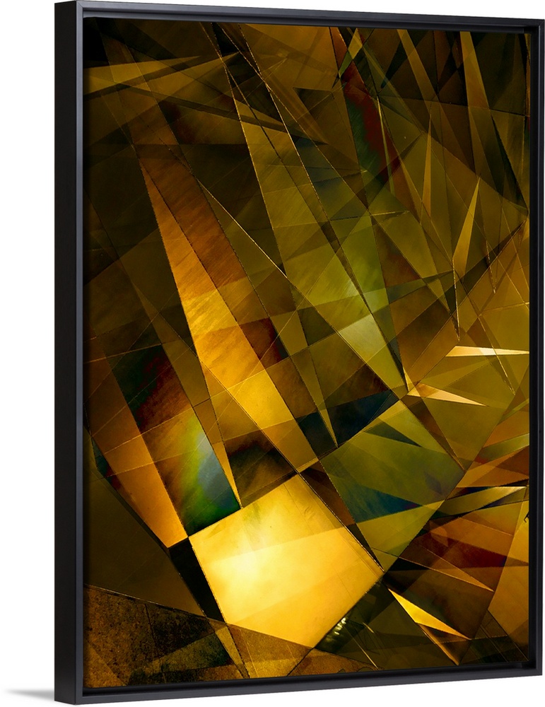 <p>Abstract photograph made of intersecting angles and lines in varying golden shades.</p>