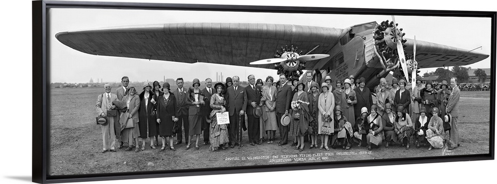 <p>Vintage panoramic image of Amelia Earhart and plane gathered with supporters in Philadelphia.</p>