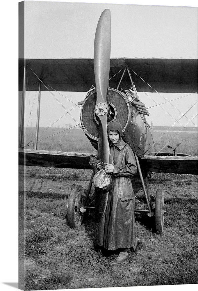 <p>American aviator Katherine Stinson in front of her biplane.</p>