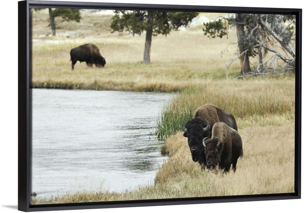 <p>American Bison along Nez Perce River in autumn, Yellowstone National Park, Nez Perce River, Wyoming. United States, Wyoming.</p>