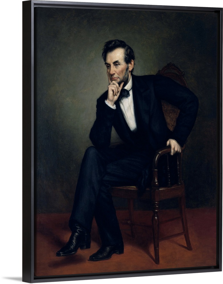 <p>Vintage American Civil War painting of President Abraham Lincoln seated in a chair.</p>