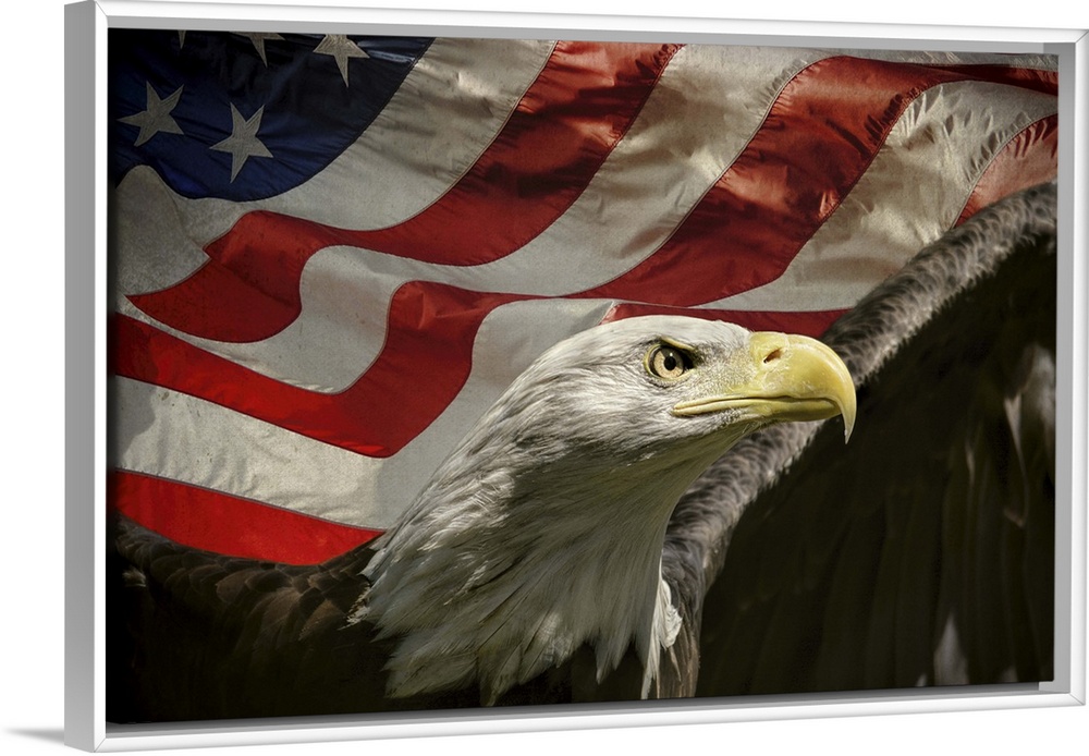 <p>Patriotic image of a Bald Eagle in front of an American Flag.</p>