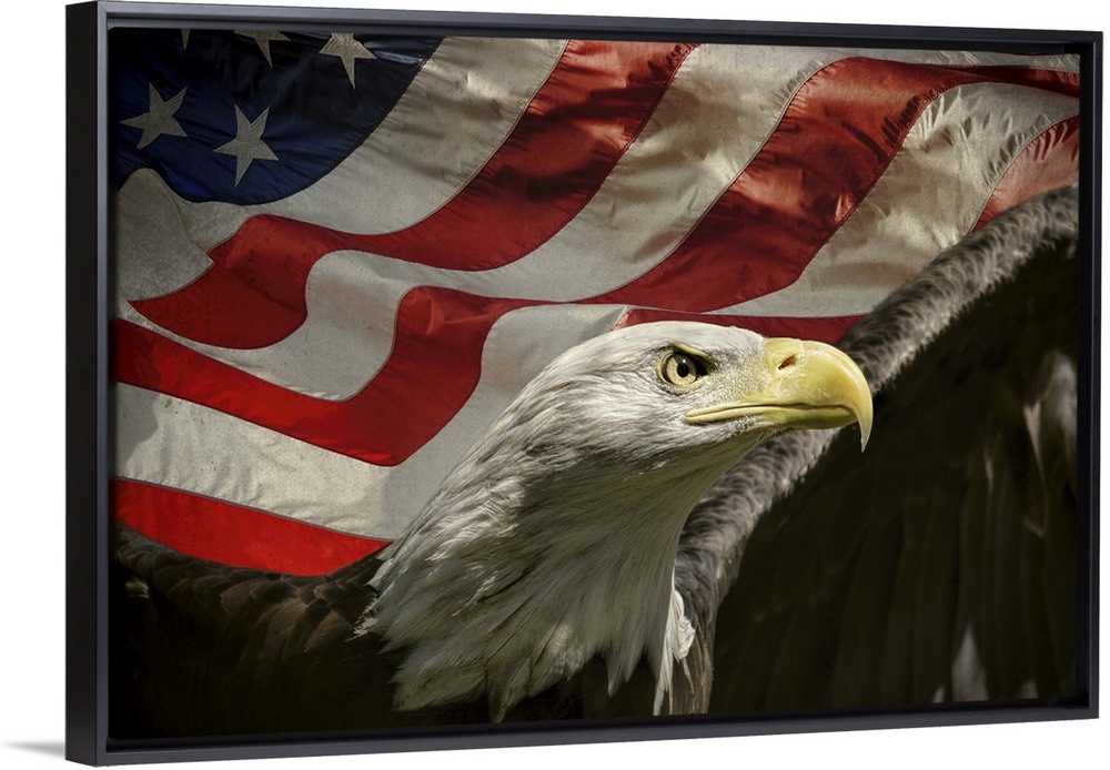 <p>Patriotic image of a Bald Eagle in front of an American Flag.</p>
