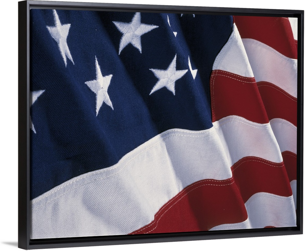 <p>Close-up photograph of a rippling flag of the United States of America.</p>
