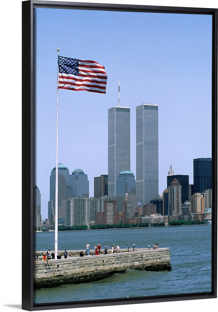 <p>American flag and World Trade Center</p>