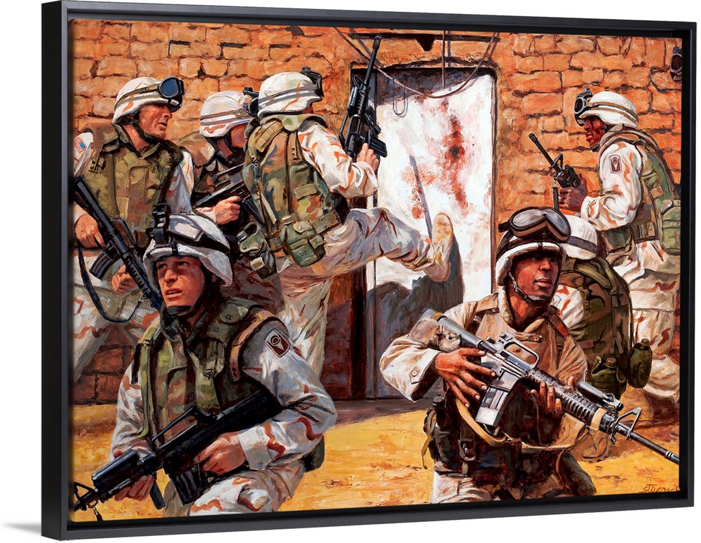 <p>Capture at Ar Ramadi, Iraq, August 20, 2003. American National Guard troops prepare to enter an insurgent stronghold in Iraq. Oil on canvas, 2006. | Location: Ar Ramadi, Iraq.</p>