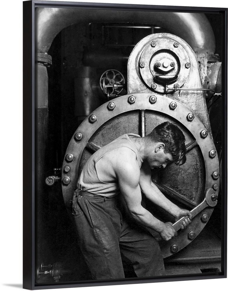 <p>American History photo of a power house mechanic working on a steam pump</p>
