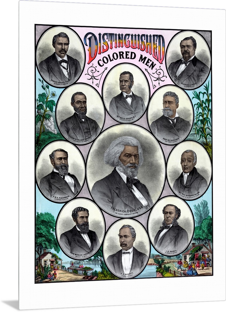<p>Vintage American History print featuring some of the 19th centuries most celebrated African American leaders. Portraits included are, Frederick Douglass, Robert Brown Elliott, Blanche K. Bruce, William Wells Brown, Md., Prof. R.T. Greener, Richard Allen, J.H. Rainey, E.D. Bassett, John Mercer Langston, P.B.S. Pinchback, and Henry Highland Garnet.</p>