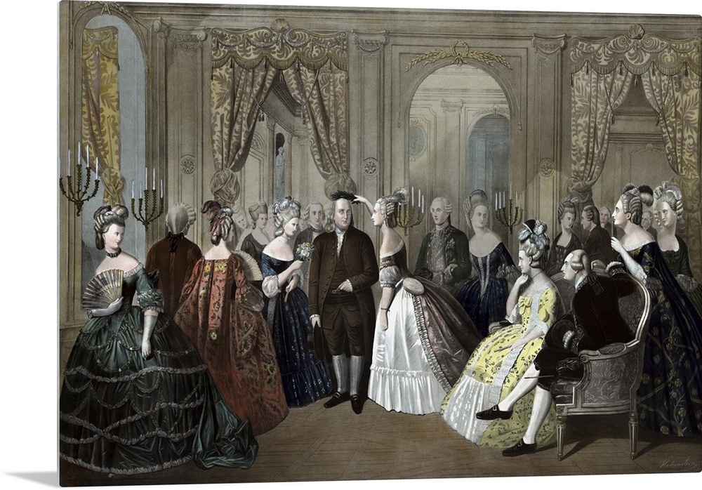 <p>American History print of Benjamin Franklin's reception by the French court.</p>