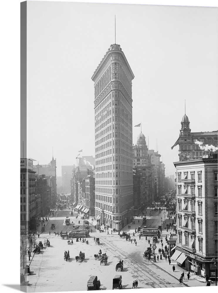 <p>American history photo featuring the Flatiron Building, an iconic New York City skyscraper, circa 1902.</p>