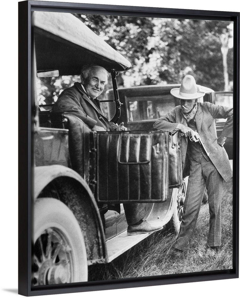 <p>American inventors Thomas Edison (left) and Henry Ford. Photographed on a camping trip, 1923.</p>