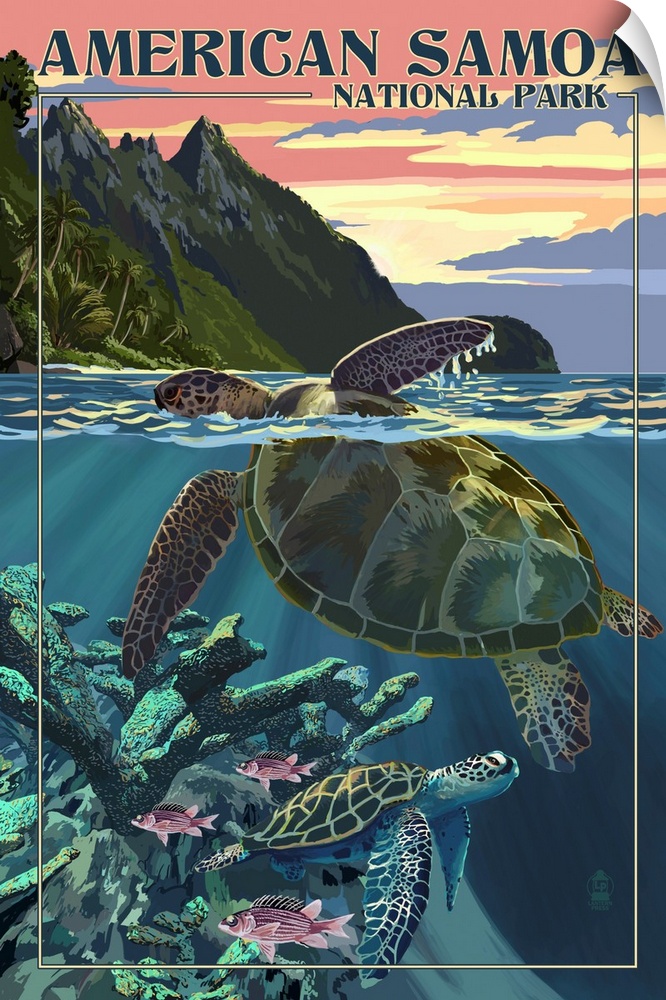 Art Lantern Press Oceania Wildlife Marine Life Coral Turtle