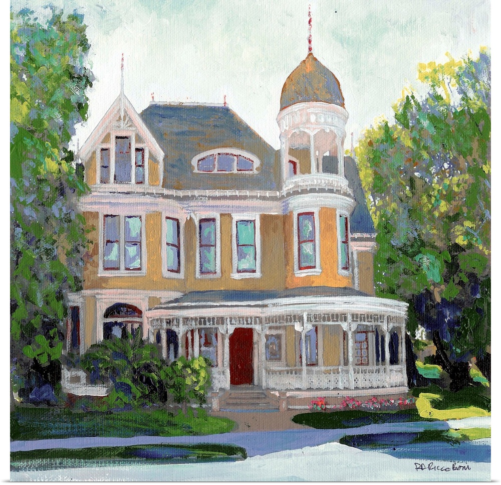 <p>Americana, a painting of the Waterman mansion by RD Riccoboni. A California Queen Anne style Victorian home in historic Bankers Hill San Diego.</p>