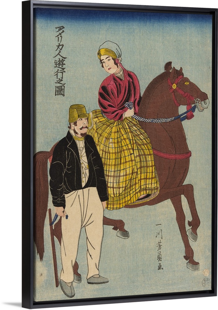 <p>Americans on an Outing, Amerikajin yuko no zu, 1860, colour woodblock print.</p>