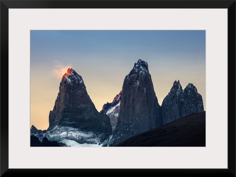 <p>Americas, South America, Chile, Patagonia, the Torres del Paine mountains at sunset in Torres del Paine national park.</p>