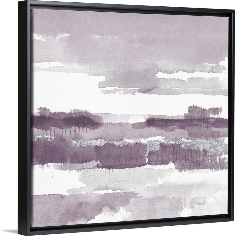 <p>A square watercolor painting of horizontal brush strokes in shades of light purple and grey.</p>
