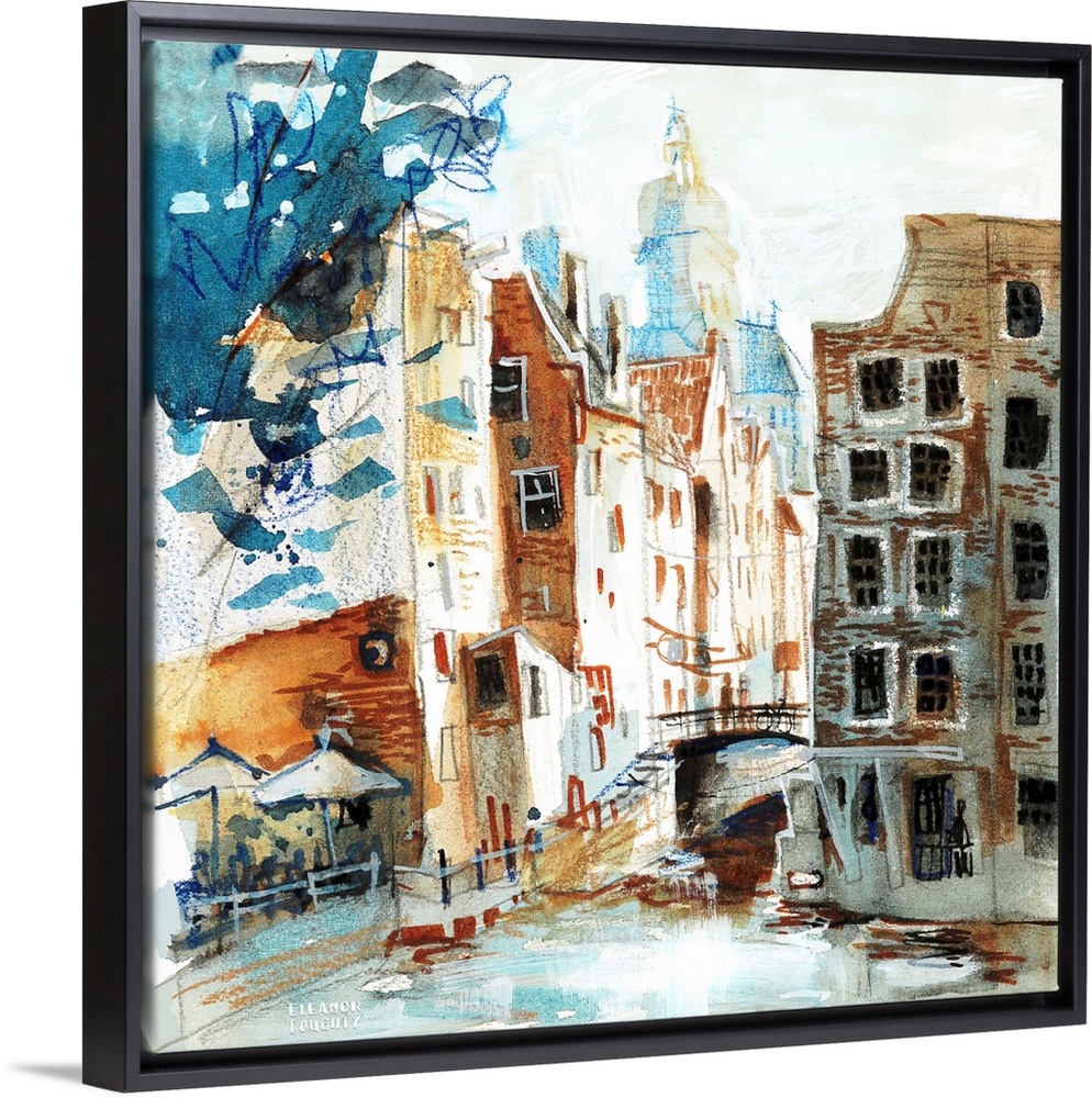 <p>Mixed media and watercolor sketch of a popular viewpoint in Amsterdam, the Netherlands, between the train station and the red light district. Another classic view of this distinctive Dutch city.</p>