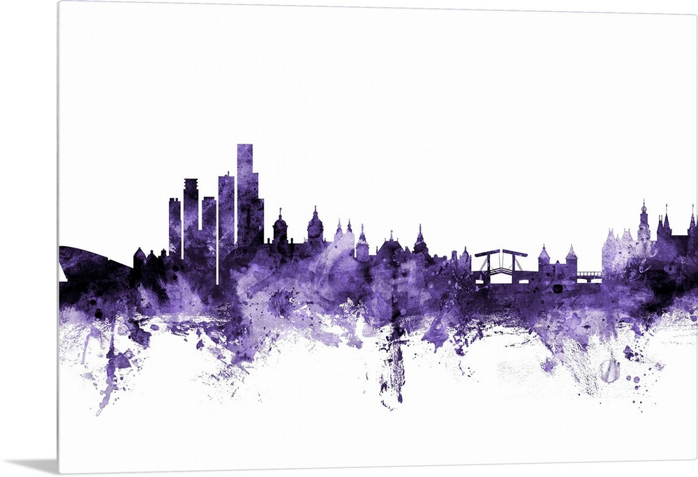 <p>Watercolor art print of the skyline of Amsterdam, The Netherlands</p>