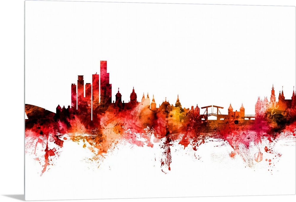 <p>Watercolor art print of the skyline of Amsterdam, The Netherlands.</p>