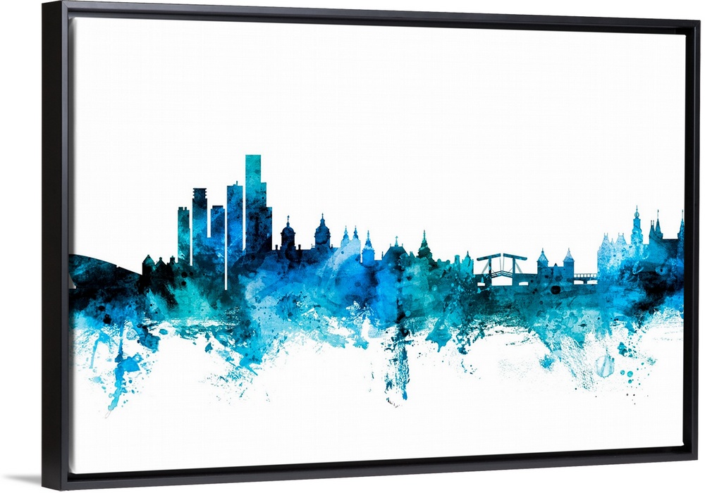 <p>Watercolor art print of the skyline of Amsterdam, The Netherlands.</p>