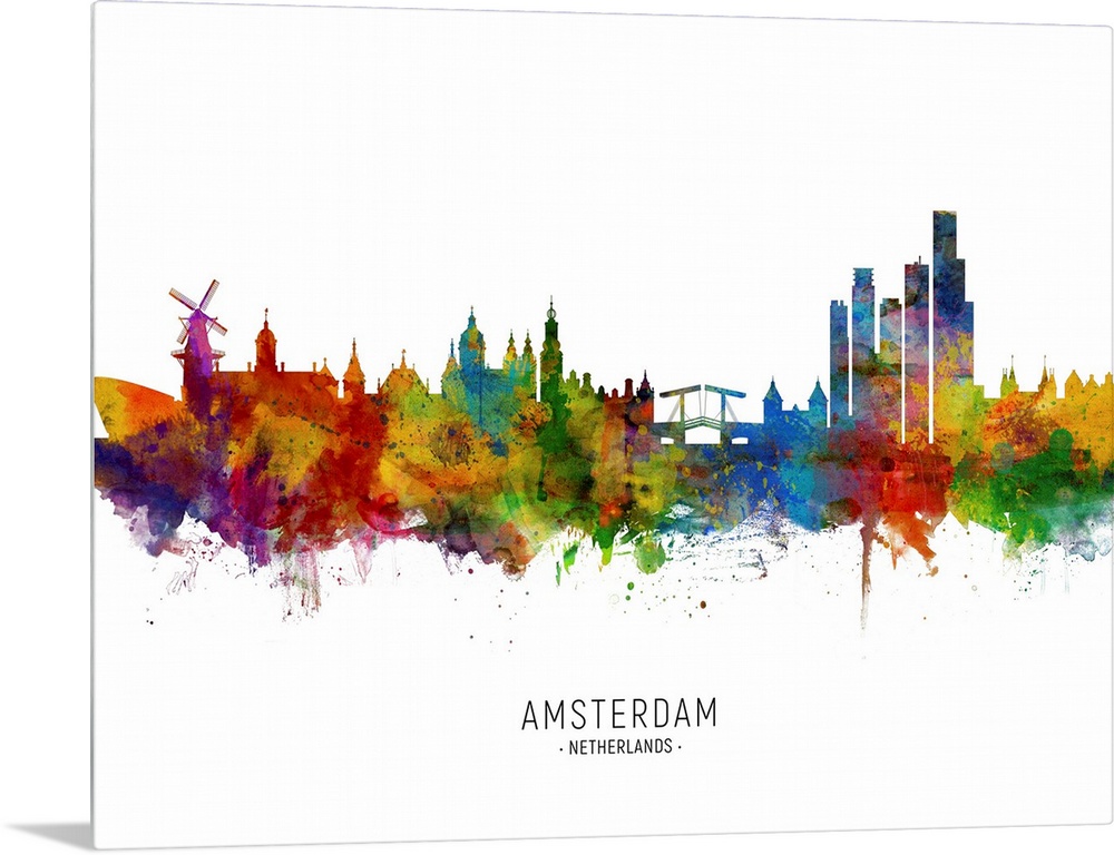 <p>Watercolor art print of the skyline of Amsterdam, The Netherlands.</p>