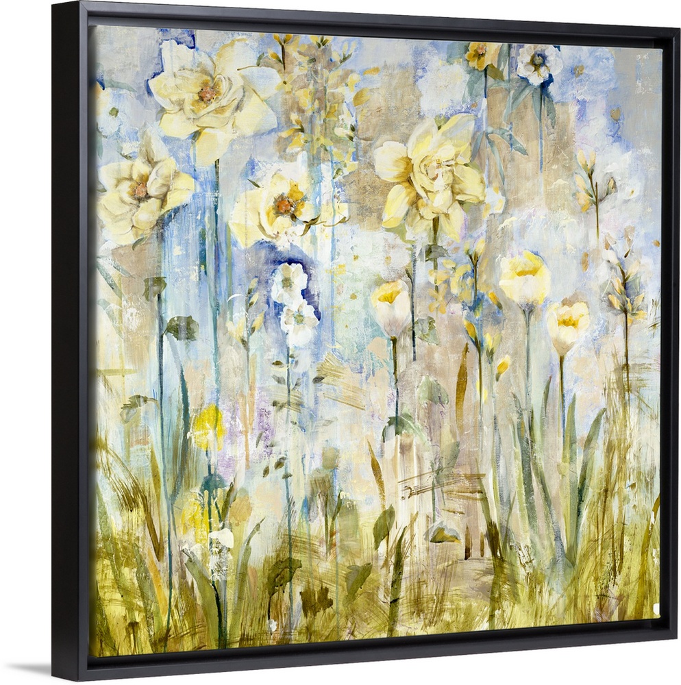 <p>A contemporary painting of a garden of pale yellow flowers.</p>