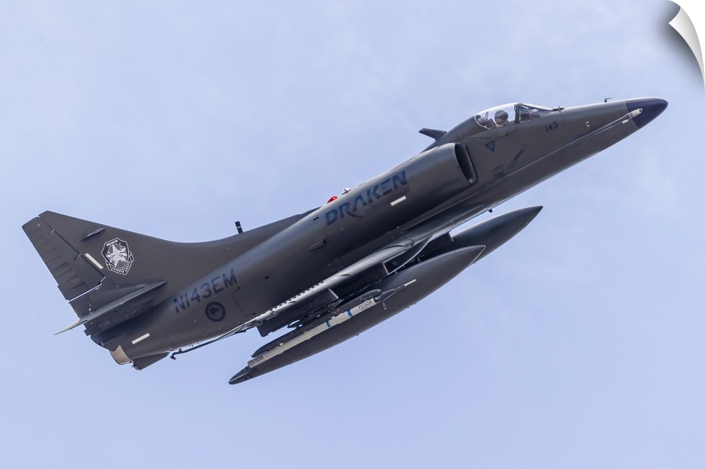 <p>An A-4K Skyhawk of Draken International climbs out of Nellis Air Force Base, Nevada, in support of a U.S. Air Force training mission.</p>