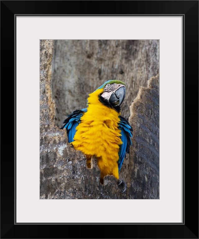 <p>An adult blue-and-gold macaw (Ara ararauna), Pousada Piuval, Mato Grosso, Pantanal, Brazil, South America</p>